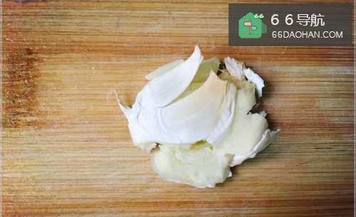 2准备一瓣蒜头,用菜刀拍碎然后剥去外皮,切成蒜末。