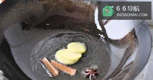 3锅里倒入油,油热后放入姜片、桂皮,八角爆香