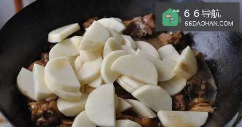 9鸡肉炖制20分钟后,倒入土豆片,翻炒均匀后炖制10分钟即可。