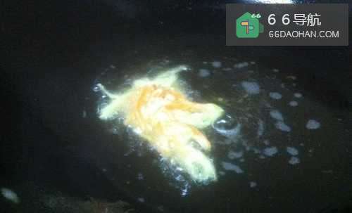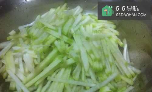 5锅中烧好热油,用筷子夹一筷子的萝卜丝放入锅中,先开大火使萝卜丝均匀粘到一起,然后转小火慢慢炸,使萝卜丝熟透,然后转大火炸至萝卜丝表面金黄,即可捞出食用。