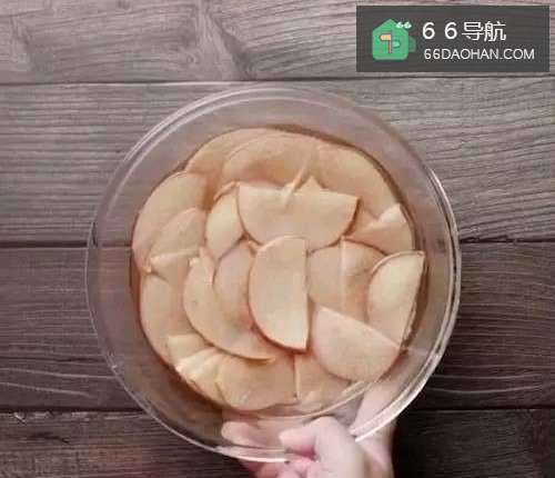 2把切好的苹果片倒入热水挤入柠檬汁。