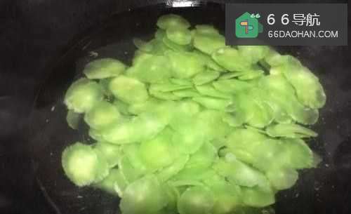 4锅中注水烧开,加入盐,倒入莴笋焯水,再加入少许食用油,煮沸后捞出。