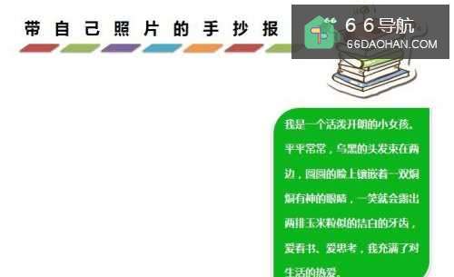 4在【带自己照片的手抄报】标题的下方右侧处,在框内写上字,如下图所示。