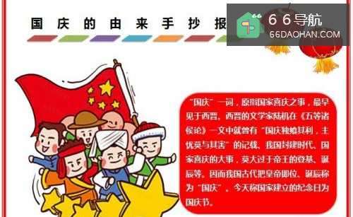2在【国庆的由来手抄报】标题的右侧处,画出画面丰富内容,如下图所示。