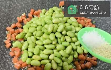 6放入豆粒,在放入食盐、鸡精、白糖进行调味,放入白糖能增加豆粒的鲜味。