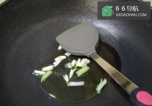 3锅里加入油后放入蒜头、葱头翻炒出香味,如图