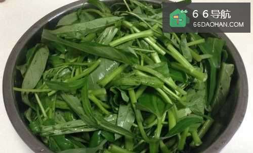 2空心菜的处理方法很特别,是一部分杆,一部分叶,每个杆上都带一个叶子。