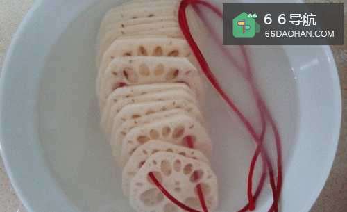 5然后把藕串放在凉水中过冷河,藕串沥干水份待用。