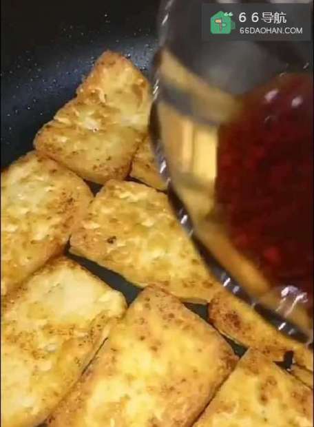 3锅中加油,油温五成热时,加入豆腐,煎至两面金黄即可。