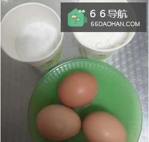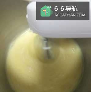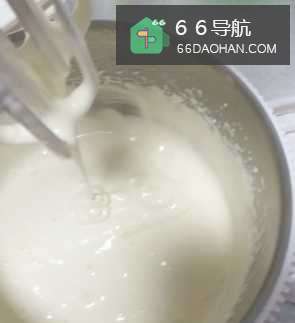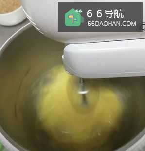 2鸡蛋放进去加白糖20克,高速打鸡蛋,至鸡蛋变白色,如下图