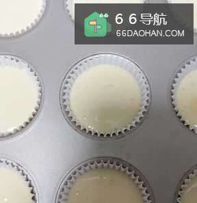 6打好的蛋糕液加入烤盘,我用的马芬蛋糕加的蛋糕托,放入预热好的烤箱内,烤20分钟