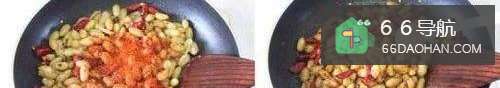 倒入炸好的花生米。