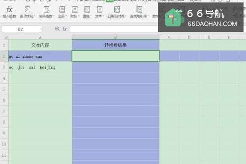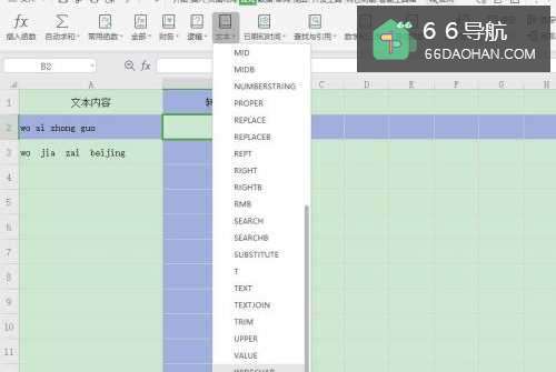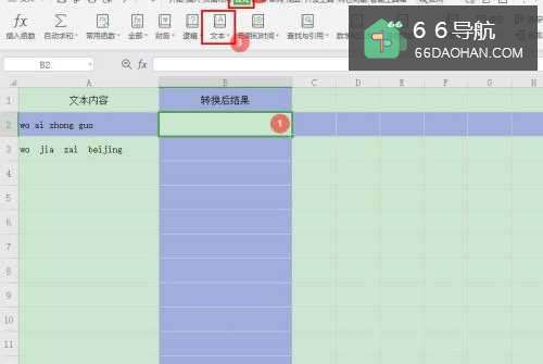 2选择单元格【B2】,点击【公式】—【文本】;