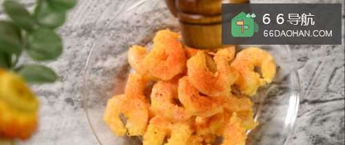 4将裹好蛋液的大虾捞出来,用筷子一只一只夹入锅里,待油温升高,复炸几秒,沥干油捞出,每一个都要炸至金黄色捞出来即可;