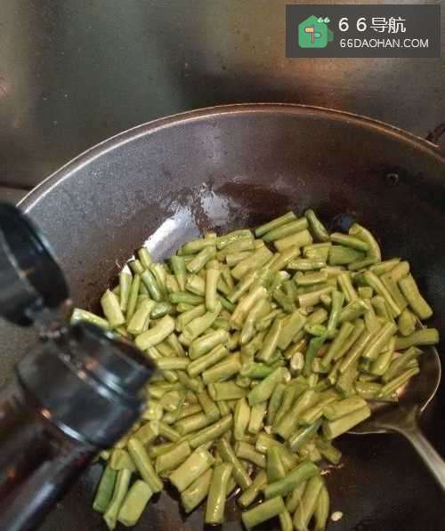5在锅中倒入适量的酱油,增加豆角的香味。