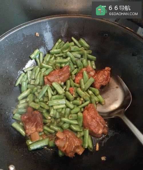 8将豆角炒熟,排骨热透,就可以出锅了,豆角软软的,排骨香香的,特别下饭。