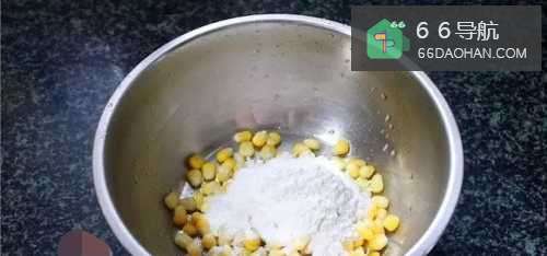 3将玉米粒捞起,沥干水分后倒入大盆中,再加入玉米淀粉;