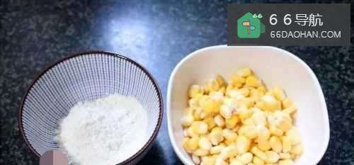 将玉米粒剥下来,同时准备好玉米淀粉或是普通的淀粉均可;