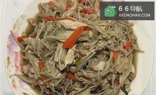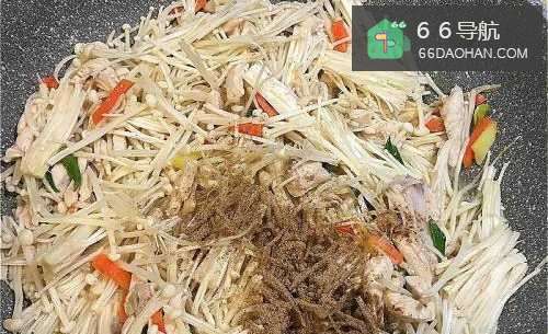 5放入金针菇,加入一小匙胡椒粉,拌匀炒熟即可。