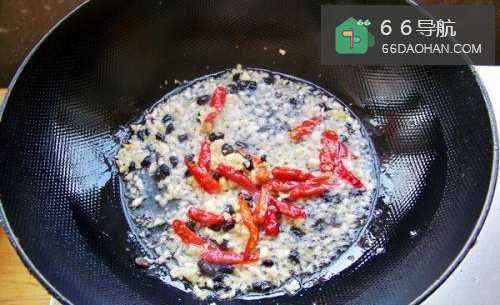 5坐锅起油,下豆豉、姜蒜、辣椒炒香
