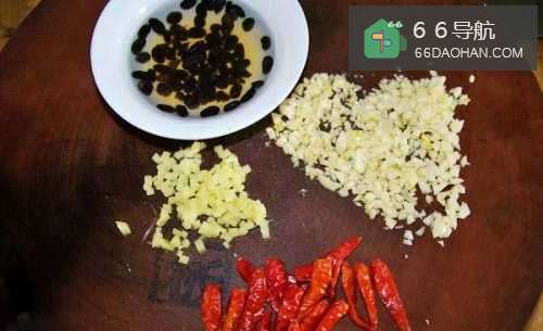 3豆豉泡发,姜蒜切米,辣椒洗净待用