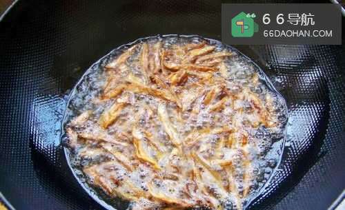 7下火焙鱼,撒味精、盐,翻炒1分钟