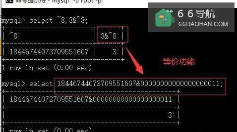 2)案例~8得到的是18446744073709551607;3&~8则是18446744073709551607转化为二进制后与0011进行按位与计算,结果为3。