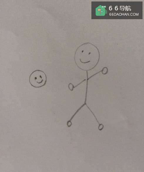 2画出爸爸的身体,两个伸开的手臂和分开的腿脚。