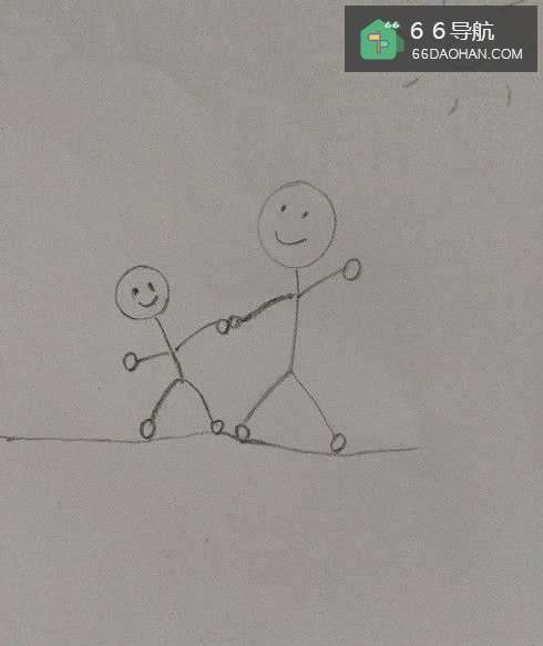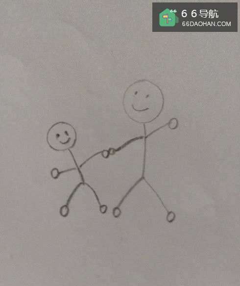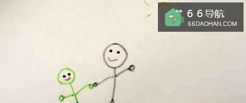 3在爸爸的旁边画出一个小宝宝头部,宝宝比爸爸身材矮小好多,身高一定要比爸爸矮小。