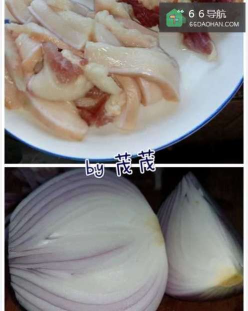 首先还是先处理食材,洗净后,肥肉切片,洋葱切丝。