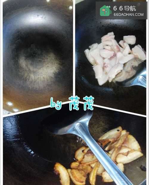 2 接着锅烧热,直接让如切好片的肥肉,翻炒。