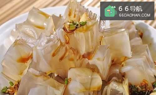 这是采用猪肉皮熬制而成,熬制过程非常慢,所以制作很麻烦,口感极好,外地很难买到正宗的皮冻。