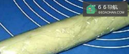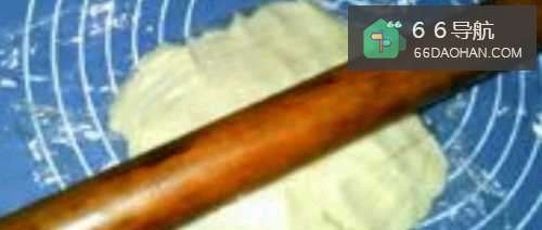 2 接着以上的步骤,记得在案板上要铺上保鲜膜,用擀面杖把已经揉压好的白豆沙来回赶,用力要均匀,如下图所示。