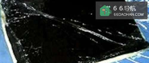 同样,另外铺一张保鲜膜,放上枣泥,擀成同样大小的片状。