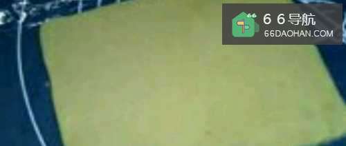 3 然后,把白豆沙按压平整如下图所示,把它按压成16*10厘米的片状,厚底要适宜,再用小刀把四周修整平整。