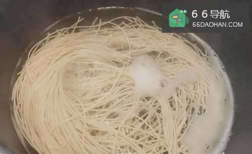2放入面条煮58分钟,锅中加几滴油,放少许盐。