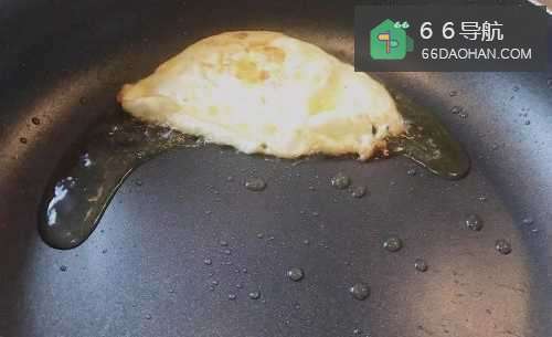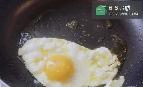 5直接将鸡蛋敲入锅中,煎至一面熟。