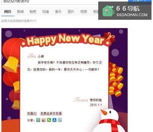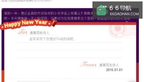 3这时会出现一个新年祝福卡片的界面,很神奇吧,百度好强大呀!