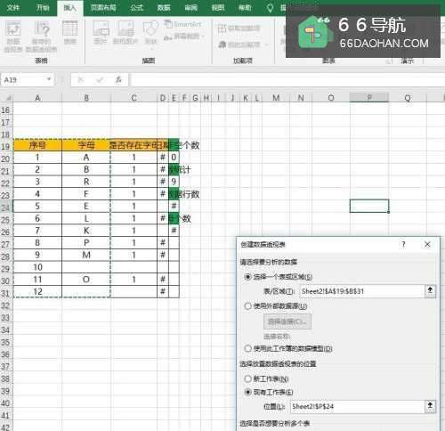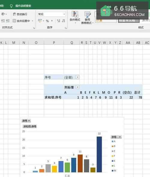 5设置透视表统计每个字母对应的序号值。