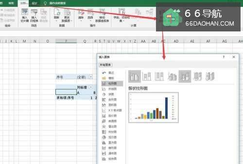 6生成数据透视图选择透视表,点击“分析”菜单,再点击“数据透视图”弹出“插入图表”框。