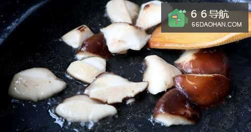6另起锅放适量的色拉油,放入香菇翻炒至变软;