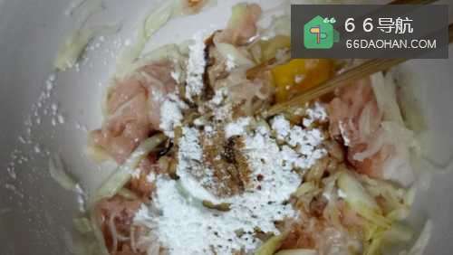 3将鸡胸肉倒入葫芦中,加入少许盐,南德,酱油,香油,面粉和鸡蛋,搅拌均匀。