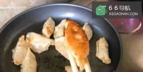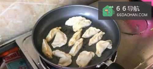 6用平底锅煎饺子,现将锅加热,倒入较多的油,饺子背部超上,站立在锅中,开小火慢慢煎,煎七八分钟之后,用筷子戳一戳饺子如果立的比较稳,就可以加入半碗水到锅中,盖上盖子接着焖。