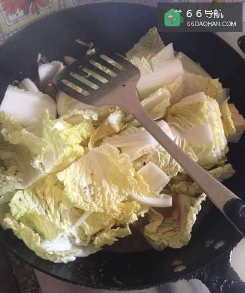 5放入白菜,翻炒,然后放入少量盐,早放盐白菜容易出水,盖上锅盖闷煮5分钟,即可出锅。