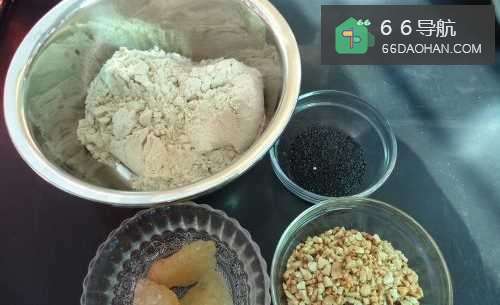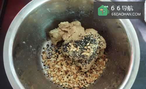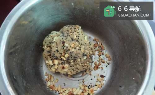6 将糯米粉和成块,再加入黑芝麻和花生。