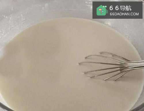 2碗中放入糯米粉白砂糖,倒入牛奶(或清水)搅拌成无颗粒的糊状