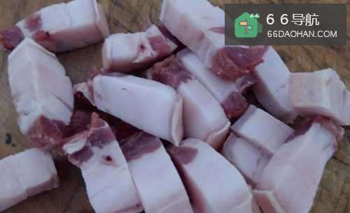 3猪肉切成肉墩,葱姜蒜准备好,葱切段,姜切片,蒜切片。