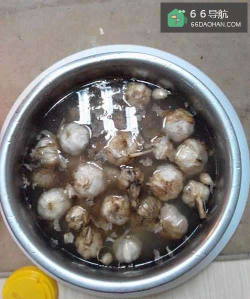 2用凉白开水将白蒜在盆中浸泡10到12个小时。
