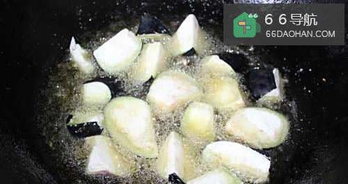 4将茄子和鸡丁过油,然后捞出沥油备用。
