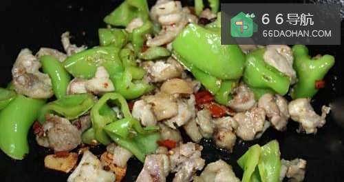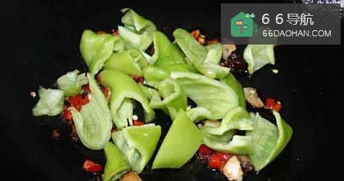 6放入辣椒翻炒至断生。